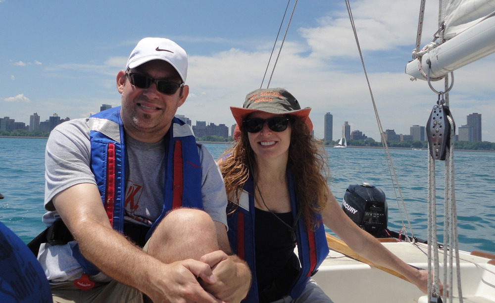 Jennifer skippering a refresher sail on a J22 on Lake Michigan along the Chicago skyline eight weeks before leaving for our trip. Click on the image to see the pics from that day.