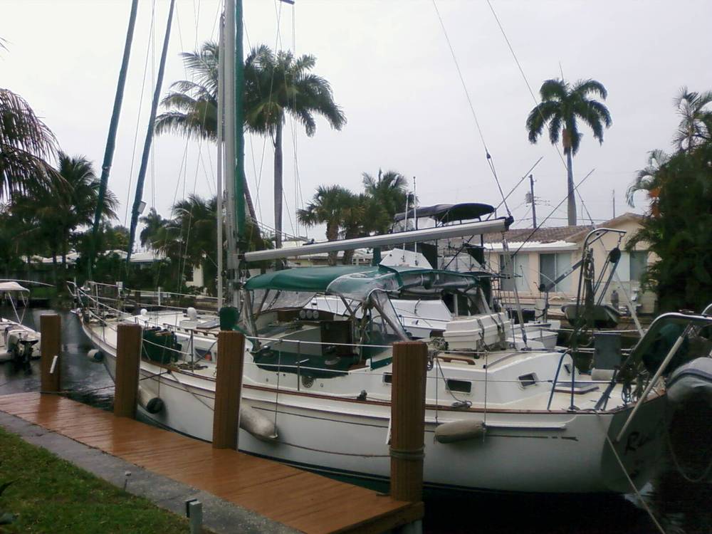 Here, Real Life is tied up to a residential dock in Ft. Lauderdale. It’s a nonliveaboard and a more afforable option than keeping it in a marina until we arrive in August.