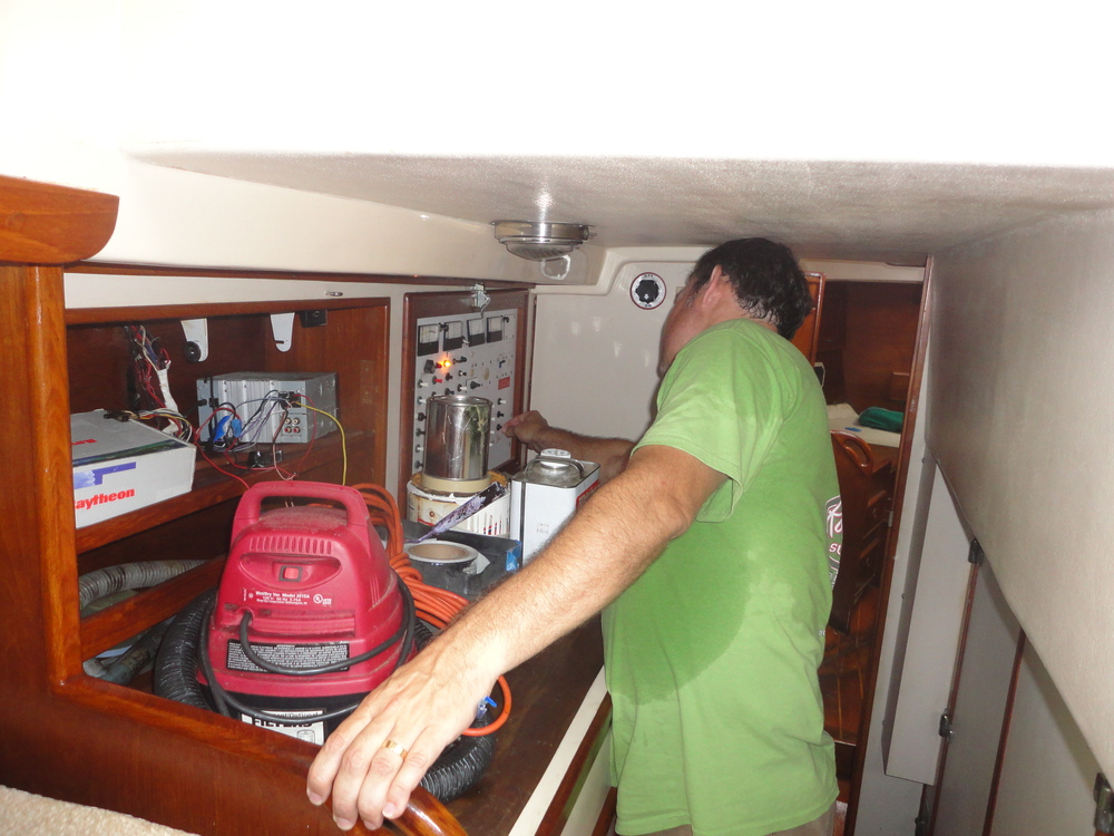 The next day and a half we spent getting the boat ready to meet Issac. We figured out how to drop the three sails, which are all equipped with roller furling gear. Although we’ve sailed on boats with similar gear, we’ve never had the need to do anything other than furl and unfurl! We learned that the trick is to WD-40 any screw or fastening before you try loosening it.
