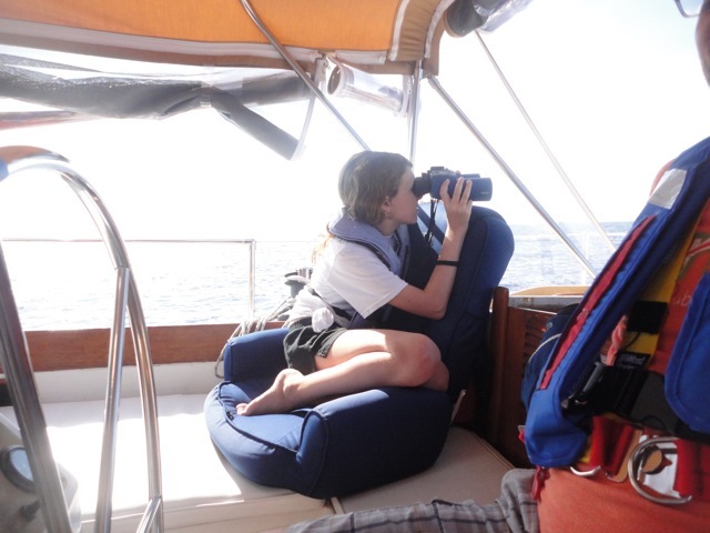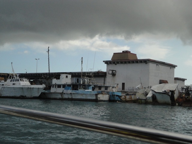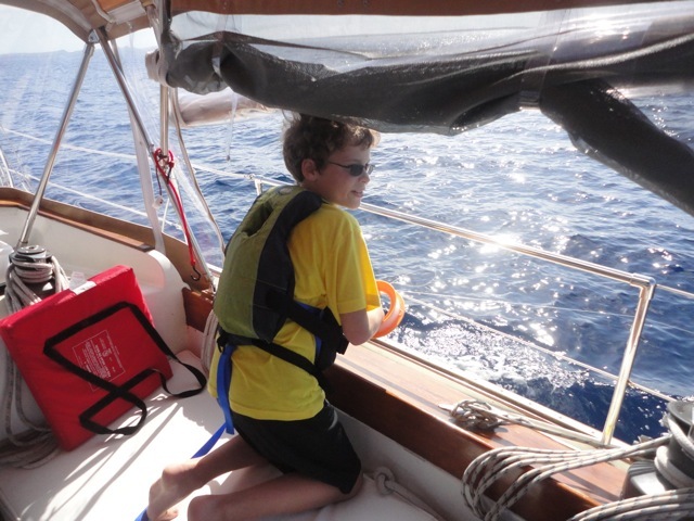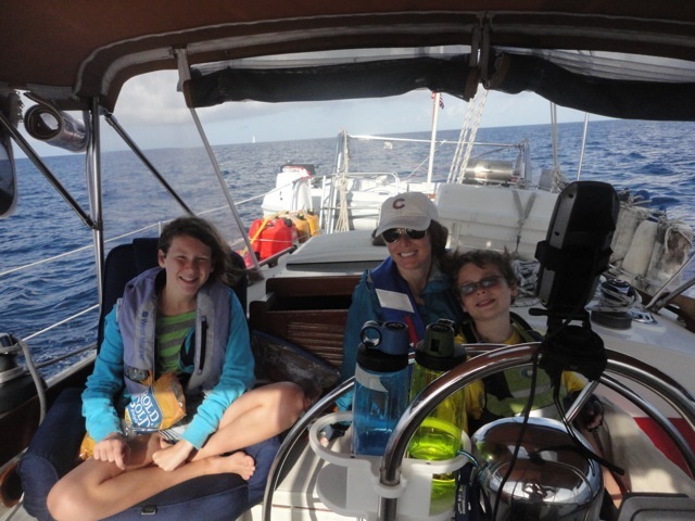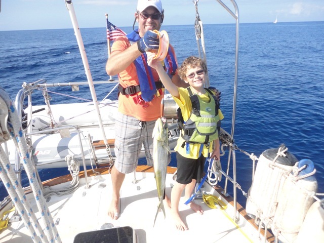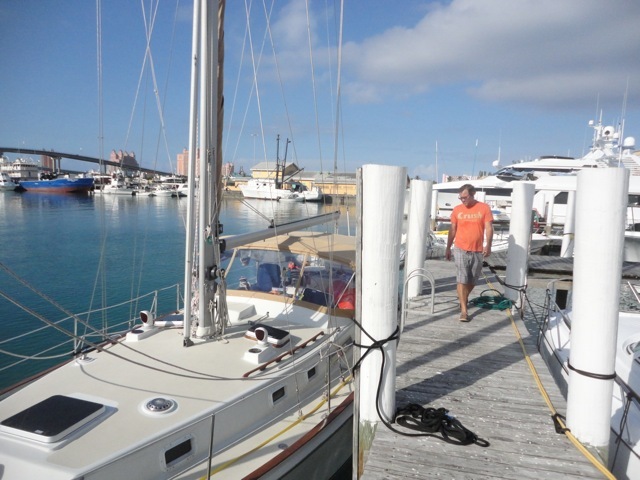 Notice in the photos that this crossing marked Zach’s first catching of the elusive mahi-mahi. Upon entering the harbor, Zach reeled in a 4-5 pound mahi-mahi. We ate it for dinner on our first night here in Nassau. (Gerry, note that this fish was caught with a rather mundane looking wooden lure sold to us by a West Marine young gun.)
