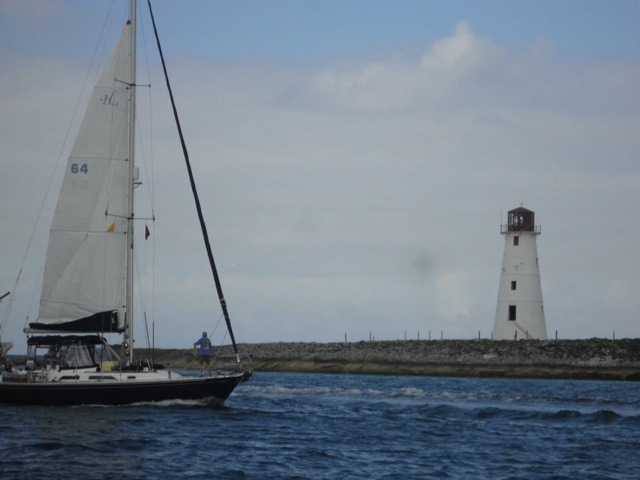 We were so excited to leave Frazer’s Hog because we knew that Nassau was within a six-hour sail. We woke up at 5:30 a.m. and we were off within the half hour along with every other boat that was in the harbor. We, like the rest of the boaters, listen to the popular “Chris Parker” weather forecasts broadcasted over the SSB. Parker will go into great detail about the wind and swells throughout the Bahamas. All the boaters listen and wait for Parker’s ideal sailing conditions. This day was what I have come to call the “perfect Chris Parker day.” Light winds, 2-3 foot swells. We all left like a fleet out of the harbor and followed one right after the other into Nassau.