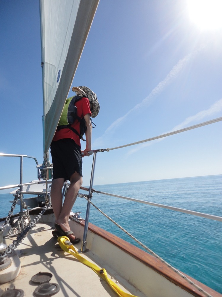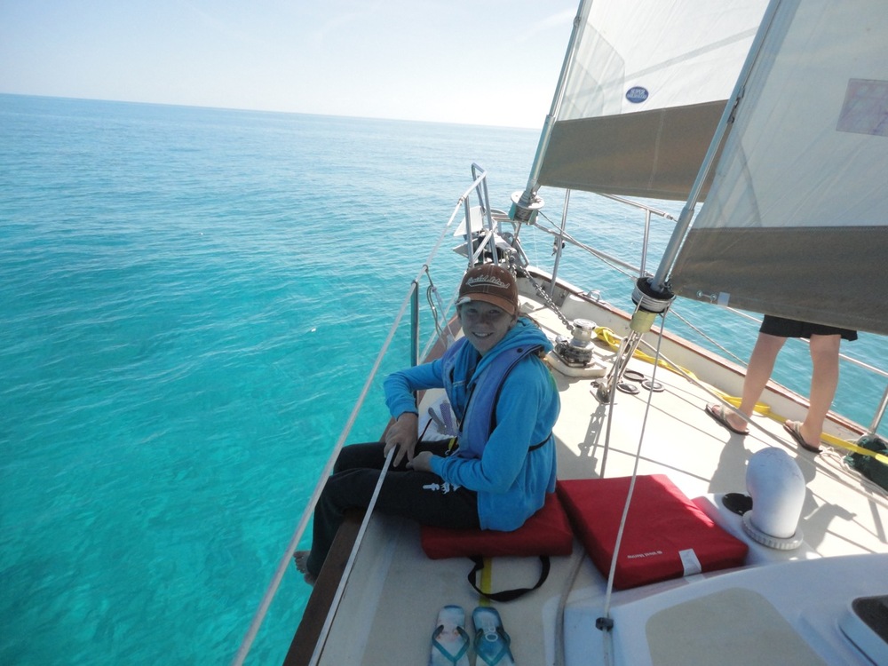 About halfway in-between Nassau and the Exumas is the Yellow and White Banks. These are areas strewn with coral heads. Some are massive and lay just under the surface of the water awaiting the keels of unaware boats. Since our course took us over the southern end of the Yellow Bank, we stationed Madeline and Zach, one on each side of the bow, as lookouts for the 90 minute sail through this dangerous area.