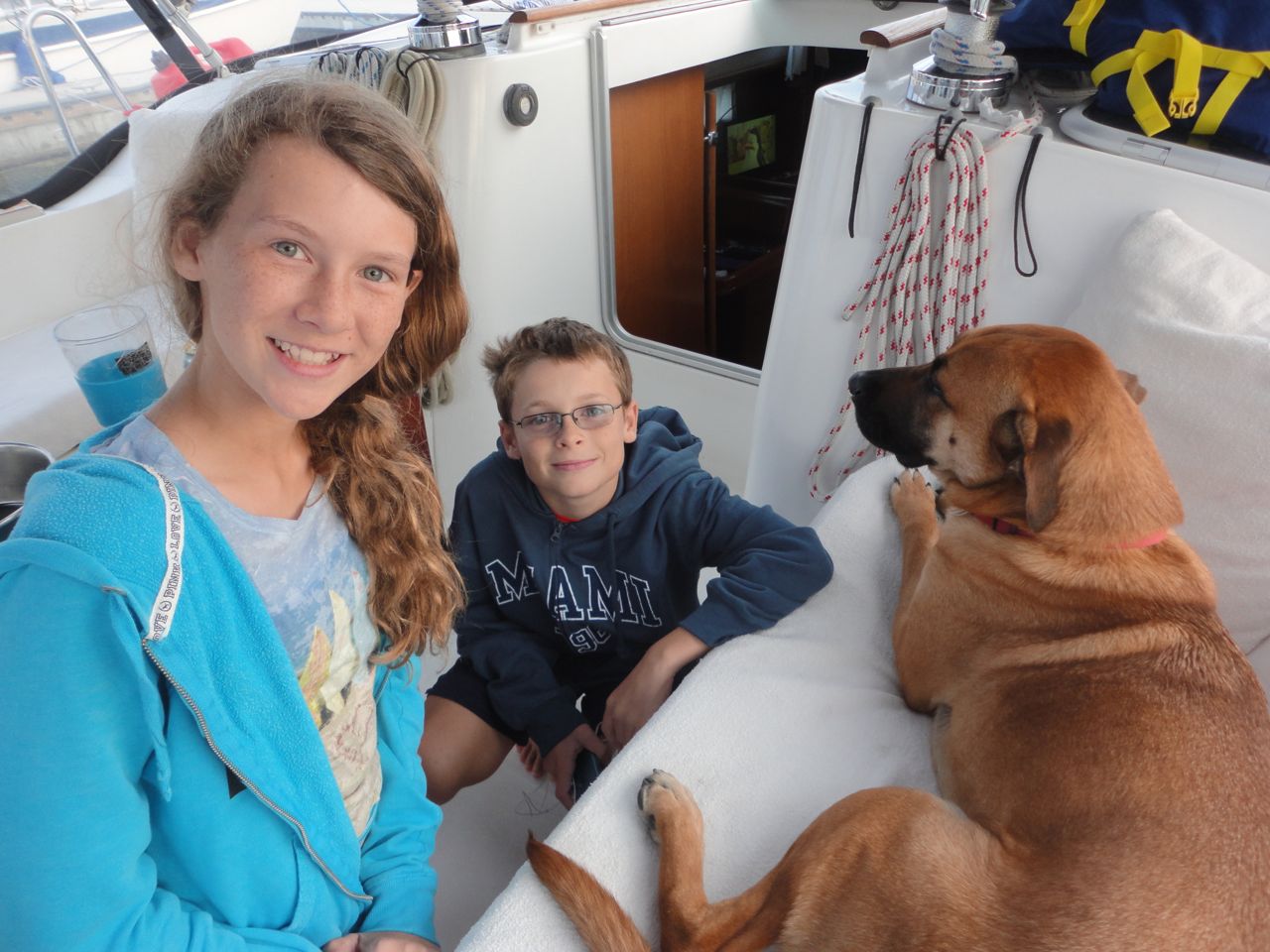 On a whim while in Emerald Bay, another boat in the marina employed Madeline and Zach in dog-sitting their highly separation anxiety-prone dog while their family of five went out to dinner (the first time they were able to in a month because of the dog). Of course, the kids complied and spent two hours sitting on the boat watching canine “Parker” rest peacefully in the cockpit. They pocketed $20 for their efforts. Dog-sitting seems quite lucrative!